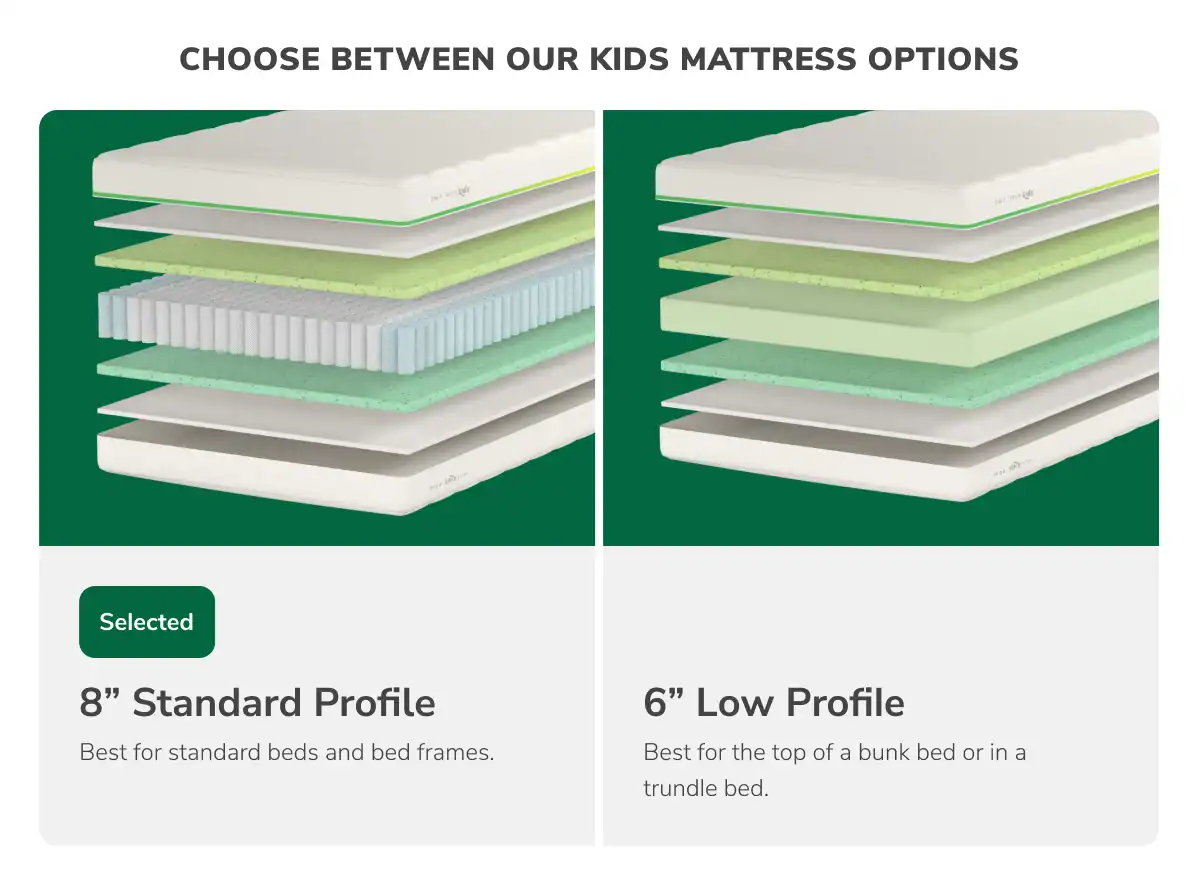 8" (Standard), 6" (Low Profile/Bunk Bed)