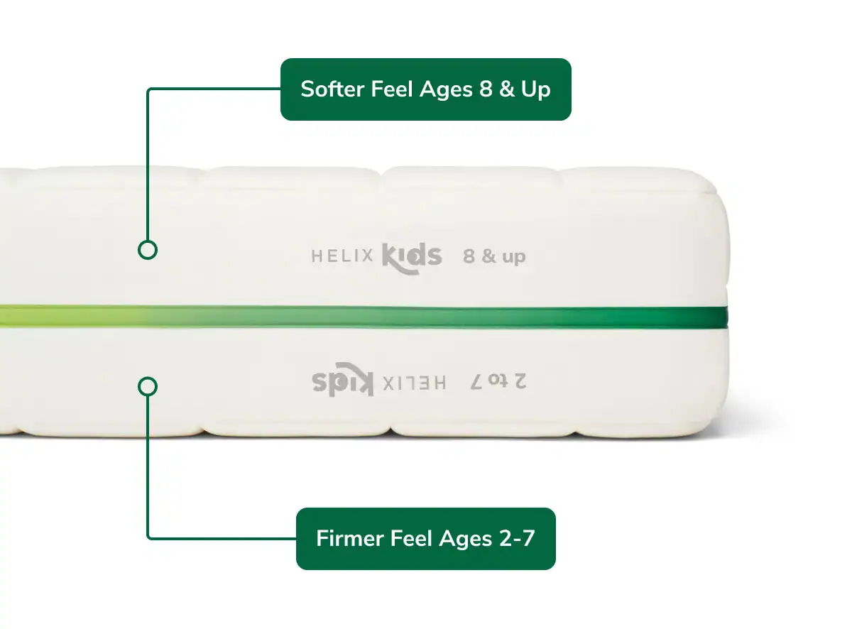 The Helix Kids Twin Mattress is designed to provide comfortable, supportive sleep for growing children and is available in both 6-inch and 8-inch thickness options to fit a variety of bed frames and room needs. Featuring a hybrid construction with breathable foam layers and individually wrapped coils, it offers balanced support, motion isolation, and durability. A soft, hypoallergenic cover with water-repellent and antimicrobial treatment helps keep the mattress clean and comfortable, making it an ideal choice for kids’ bedrooms, bunk beds, and everyday use.