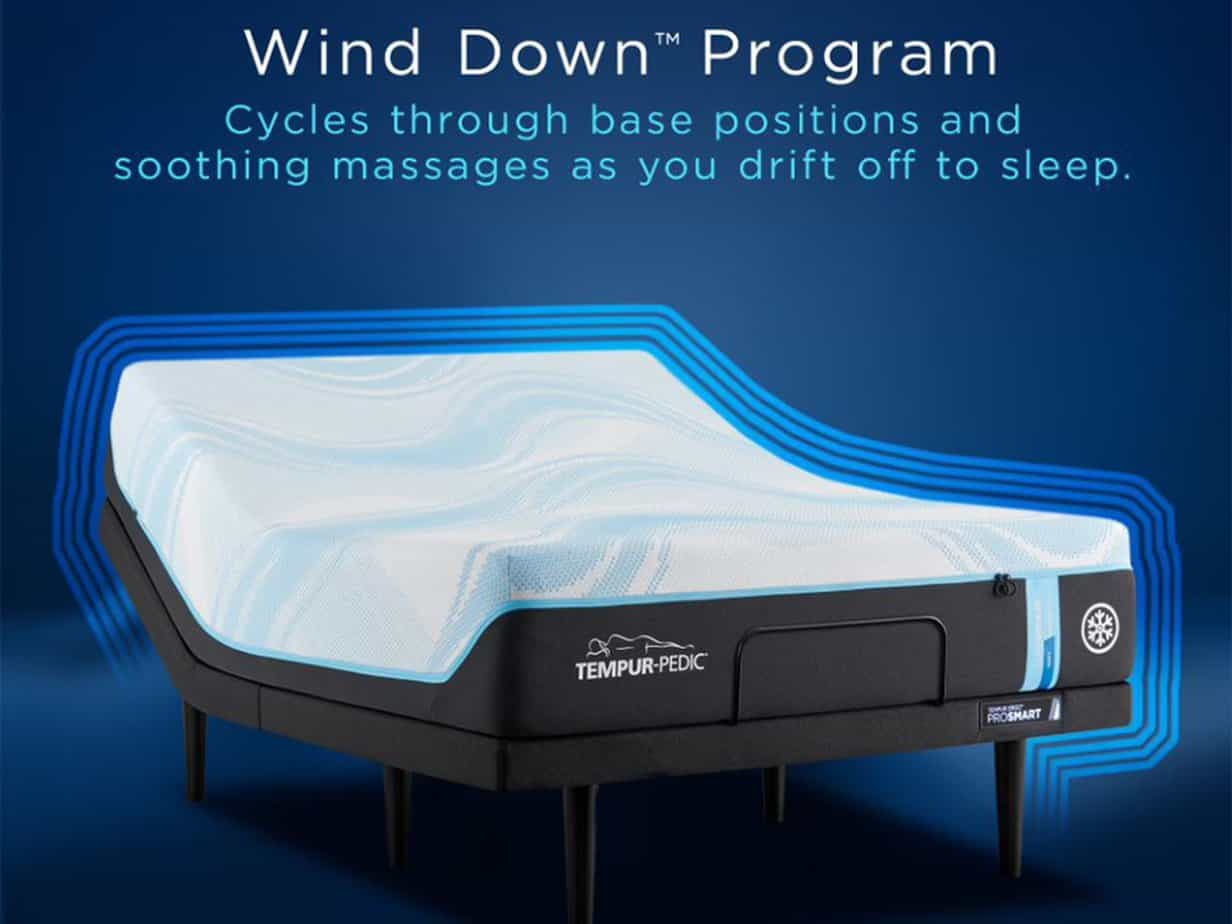 Wind Down™ is a preset program option that cycles through different base positions and soothing massage types so you can calmly and comfortably drift off to sleep