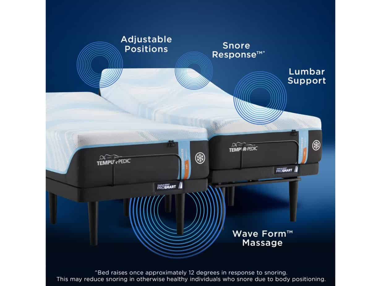The all-new TEMPUR-Ergo® ProSmart™ Base powered by Sleeptracker-AI® gives you an innovative sleep solution that can detect snoring and automatically respond, which may help reduce it,* so you don’t have to be disturbed during the night. The innovative base also includes features to help you relax through soothing massage combinations that prepare your mind and body for sleep. Plus, through an easy-to-use app, you can receive personalized sleep coaching with insights and expert-level analytics to help track and improve your sleep quality over time.